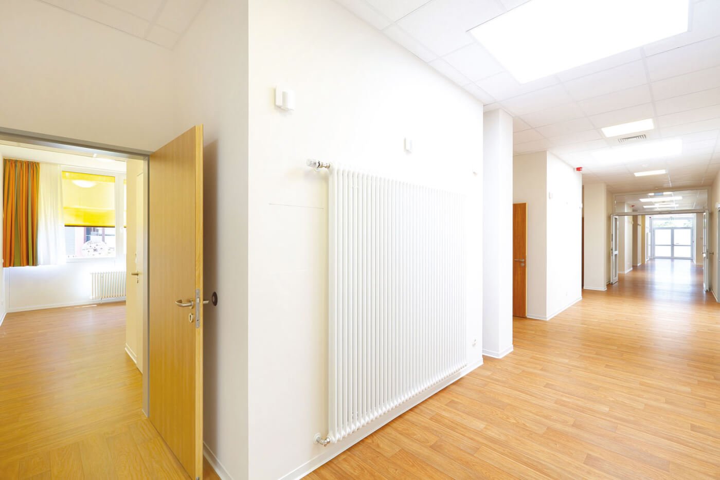 Aus den ehemaligen Räumen einer Großküche wurden wohnliche Einzelzimmer für die Wiedereingliederung psychisch kranker Patienten geschaffen. Zahlreiche Oberlichter durchfluten die Räume mit Tageslicht und sorgen für eine behagliche Stimmung. Die zurückhaltende Farb- und Materialgestaltung verleiht den Räumlichkeiten Ruhe.