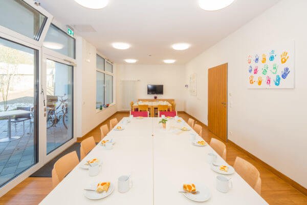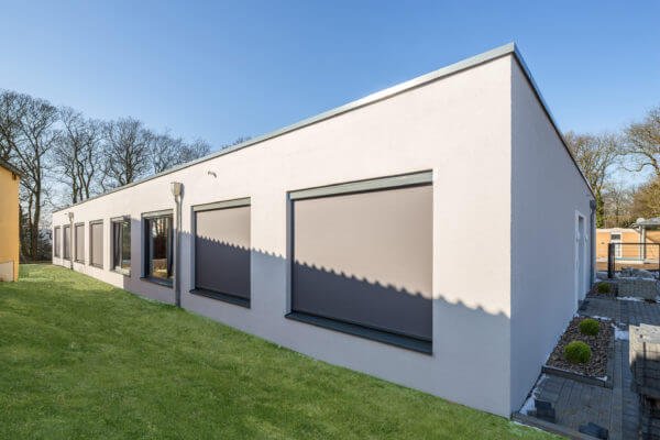 Das sogenannte Gartenhaus, welches sich auf einem der Hügel des weitläufigen Areals befindet, sollte um acht Plätze erweitert werden, wobei der Bestand mit geringen Mitteln ebenfalls modernisiert werden sollte. Der L-förmige Bestandsbau wurde um einen eingeschossigen L-förmigen Erweiterungsbau zu einem U umgebaut. Die Baukörper sind hierbei durch eine denkmalgeschützte Wand eingefasst und so ergibt sich ein geschützter Innenhof, in dem sich die Patienten frei bewegen können. Während im Altbau Patienten mit einem höheren Betreuungsaufwand untergebracht sind, wurde bei dem Anbau darauf geachtet, dass die hier untergebrachten eigenständigeren Patienten Bedingungen vorfinden, die es ihnen ermöglicht, sich weitestgehend selber zu versorgen (eigene Nasszellen, Gemeinschafts- und Essräume etc.). Große Fenster in den Zimmern, Sicht- und Lichtachsen ermöglichen eine gute Orientierung und verbinden innen und außen.