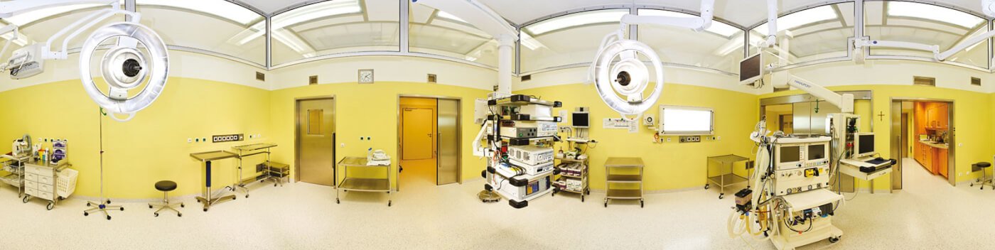 Aufgabenstellung war es, den vormals als reinen Eingriffsraum genutzten Raum an den Zentral-OP und an die hier vorhandene Infrastruktur anzubinden. Ein in die Fassade geschnittenes Fenster sorgt für Tageslicht im OP und für ein angenehmes Arbeitsumfeld. Ein vollausgestatteter Einleitraum wurde auf Wunsch des Bauherrn vor dem OP eingerichtet.
